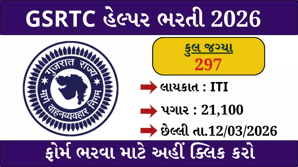 Gujarat State Road Transport Corporation (GSRTC) Helper Recruitment 2026 – Special Drive for Divyang | 297 Vacancies