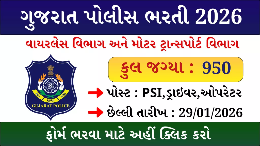Gujarat Police Wireless & Motor Transport Recruitment 2026 : The Gujarat Police Recruitment Board (GPRB) has officially announced a large-scale recruitment drive for 2026, opening doors for engineering graduates and diploma holders who aspire to build a technical career in uniform. 🚓📡